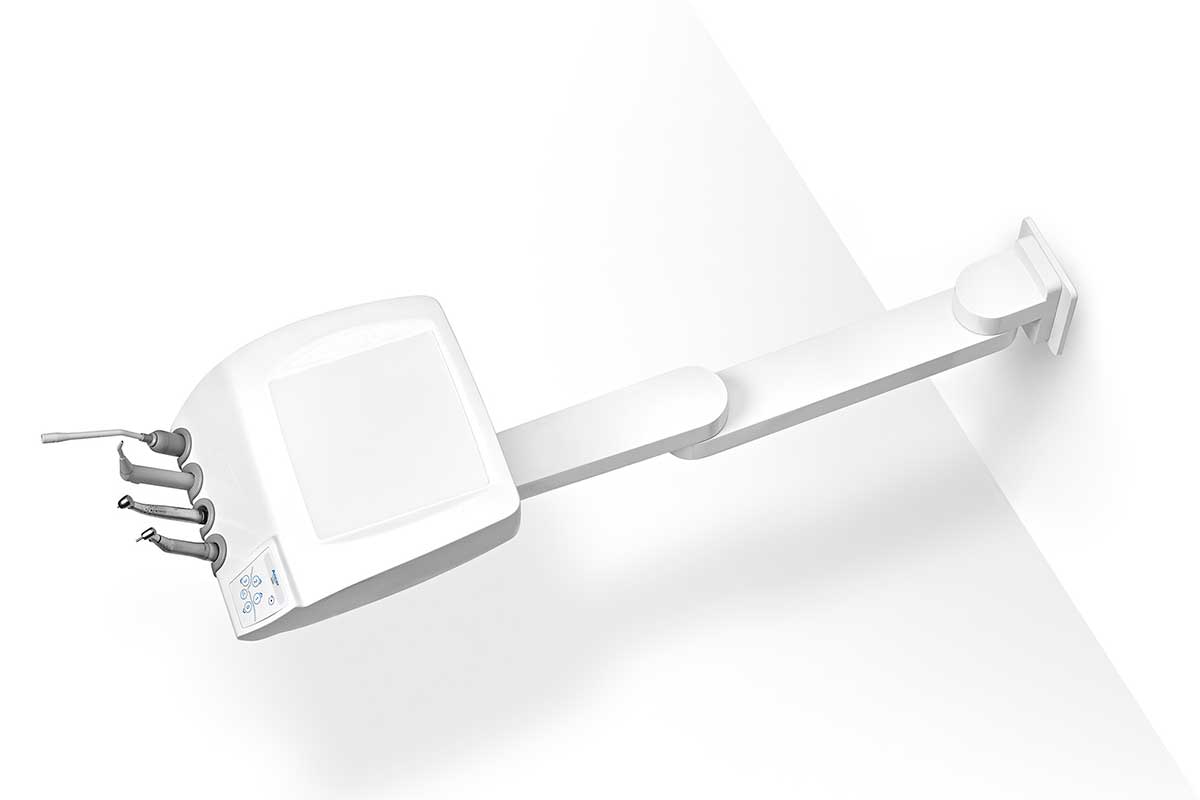 El CT10 es una bandeja de instrumentos con un brazo articulado para fijar en la pared o bajo el mueble de la consulta. La rotación del brazo y de la propia bandeja hace accesible el módulo a la zona de trabajo y queda recogido bajo el mueble una vez finalizada la jornada, mejorando el acceso al box y la limpieza de la unidad. Incorpora jeringa 3F de serie y de forma opcional monta turbina, micromotor y ultrasonidos. Fabricado completamente en aluminio.